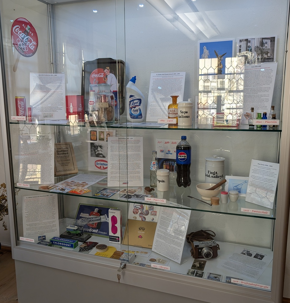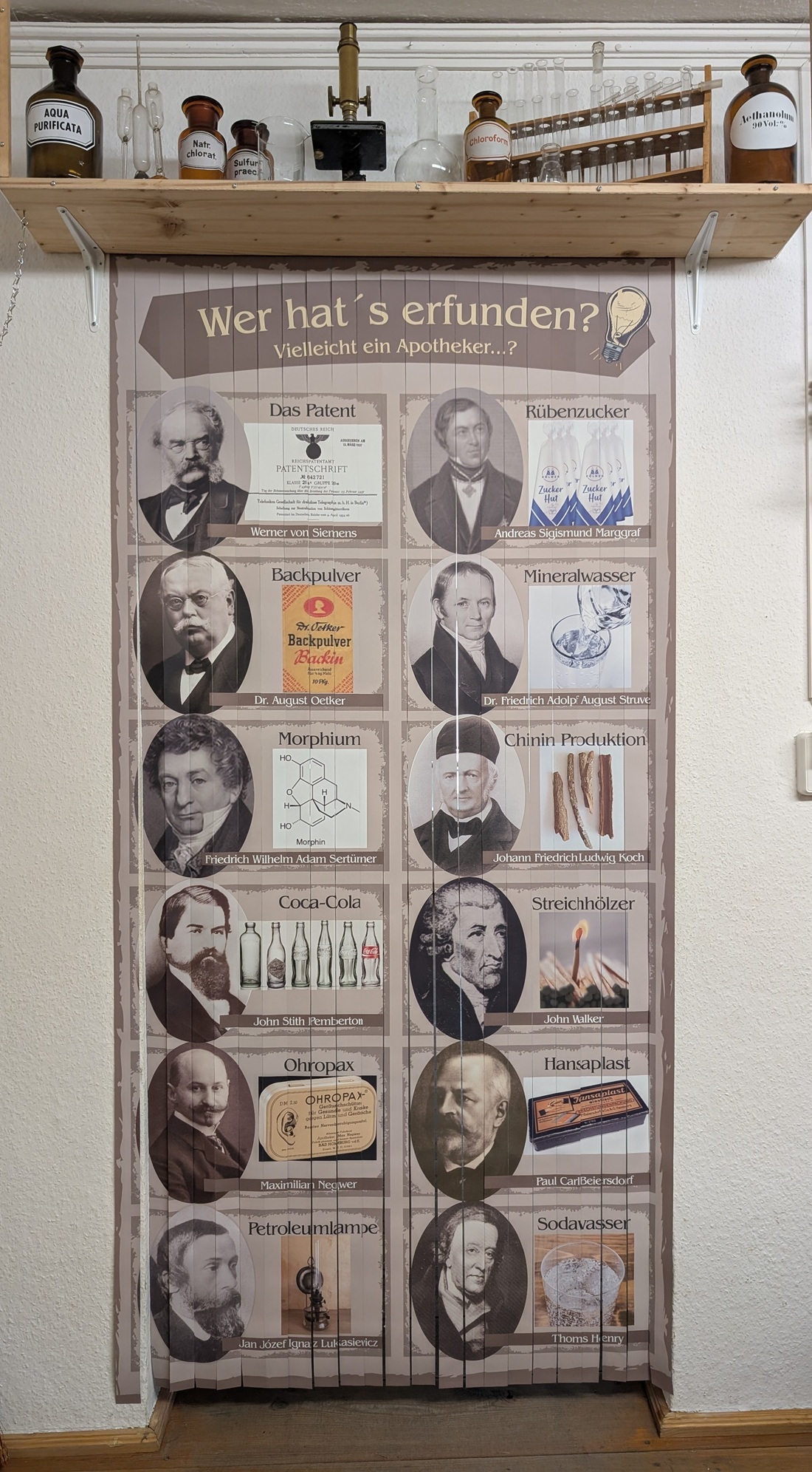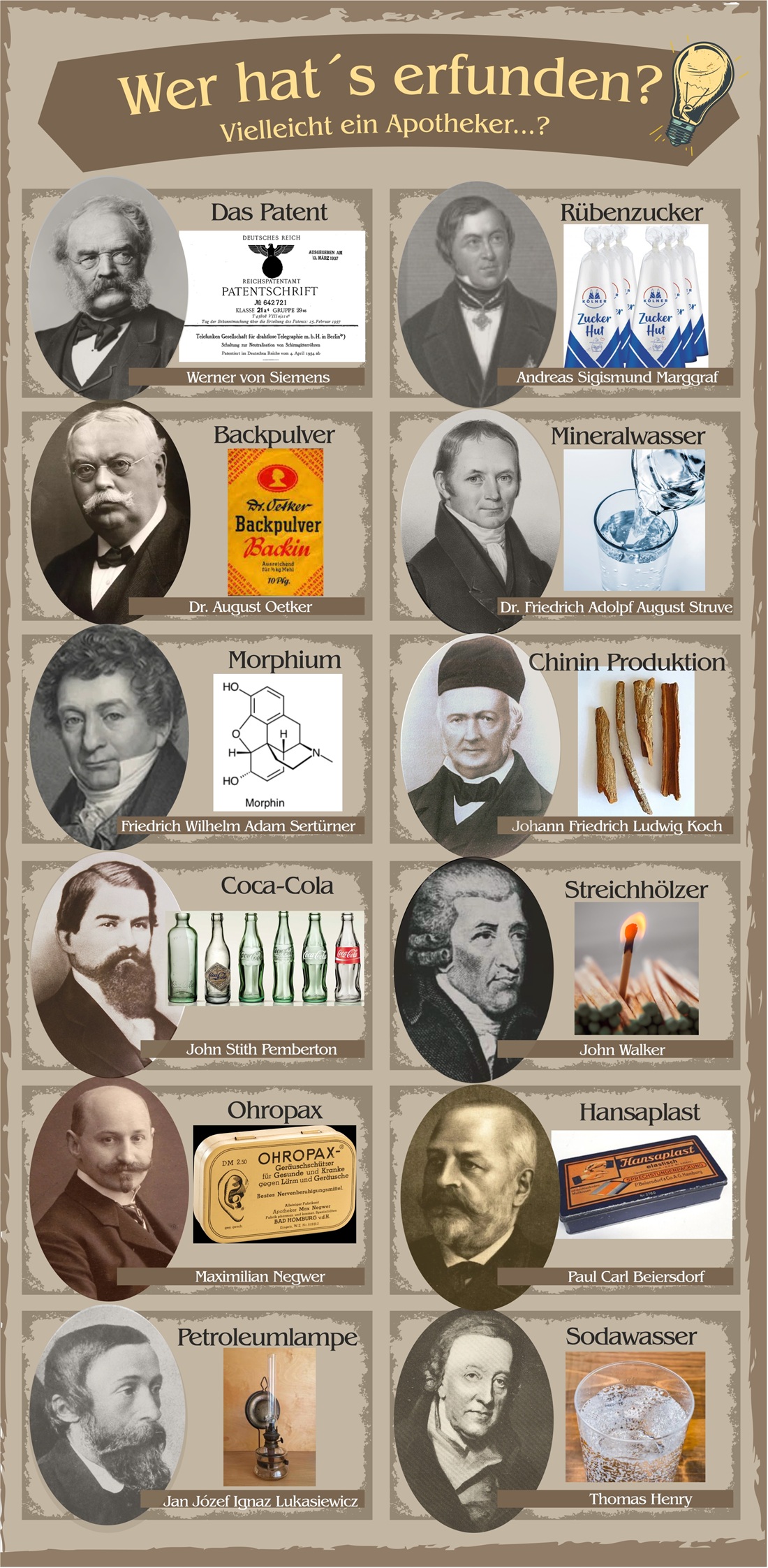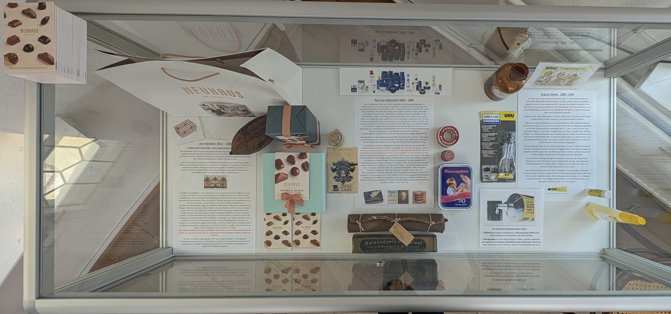 Die Ausstellung präsentiert Beispiele aus drei Jahrhunderten wissenschaftlicher und technischer Innovationen, darunter die Herstellung von Rübenzucker, die Entwicklung von Sodawasser, die Isolierung von Morphium, frühe Gasbeleuchtungssysteme, den UHU-Klebstoff, die Chlorodont-Zahnpasta und zahlreiche weitere Erfindungen, die aus apothekerlichem Forschergeist hervorgingen.